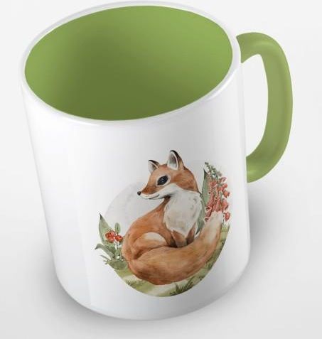 Kubek z przesłodkim lisem wykonanym techniką akwareli.