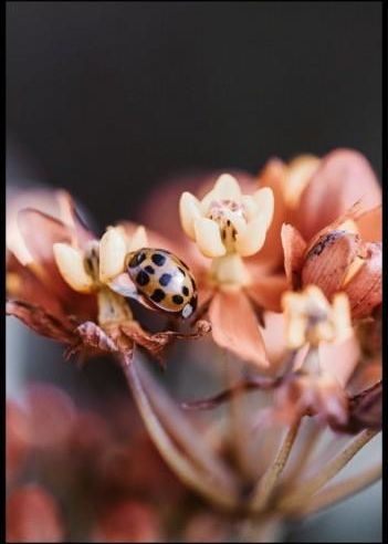 Delikatne zdjęcie biedronki na różowych kwiatkach, plakat z ciemnym tłem. Do plakatu nie jest dołączona ramka. *PLAKAT NIESPODZIANKA - to dowolny plakat z naszej kolekcji, w dowolnym wymiarze, jednak nie większy niż zamówiony rozmiar. Plakat konfekcjonowany jest losowo, dlatego nazywa się niespodzianka. My również nie wiemy, jaki wzór do Ciebie trafi. Jednak każdy lubi niespodzianki, dlatego możemy śmiało stwierdzić, że to oczekiwanie sprawi niesamowitą radość.