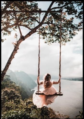 Plakat - fotografia przedstawiająca zapierający dech w piersiach widok kobiety huśtającej się na huśtawce "na wysokości". Do plakatu nie jest dołączona ramka. *PLAKAT NIESPODZIANKA - to dowolny plakat z naszej kolekcji, w dowolnym wymiarze, jednak nie większy niż zamówiony rozmiar. Plakat konfekcjonowany jest losowo, dlatego nazywa się niespodzianka. My również nie wiemy, jaki wzór do Ciebie trafi. Jednak każdy lubi niespodzianki, dlatego możemy śmiało stwierdzić, że to oczekiwanie sprawi niesamowitą radość.