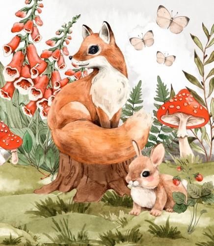 Próbka - wycinek tapety forest family art 31x31 cm, w skali 1:1. Zamówienie próbki da pogląd na kolory wydruku, rodzaj materiału i rzeczywisty wymiar wzoru na tapecie. Dzięki próbce łatwiej dopasujesz kolor farby do pozostałych ścian czy elementów wystroju pomieszczenia. Chcesz zobaczyć, jak wygląda wzór na całej tapecie? Zerknij tutaj.