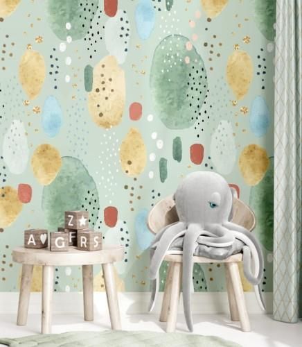 TAPETA ABSTRAKCYJNE PLAMY I KROPKI Tapeta "Abstrakcyjne plamy i kropki" to wesoły, kolorowy wzór na tle jasnej zieleni. W dziecięcym pokoju stworzy wspaniałą przestrzeń do zabaw i wypoczynku. Przesunięcie wzoru następuje co 100 cm, czyli cały bryt. SZCZEGÓŁY TAPETYABSTRAKCYJNE PLAMY I KROPKIIndeks …