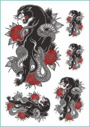 Fotobloki & Decor Tatuaże Tymczasowe Pantera Z Wężem I Różami Białystok