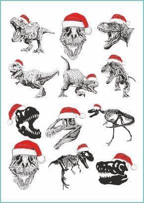 Tatuaże zmywalne z tyranozaurami Zestaw świątecznych tatuaży zmywalnych zawierający 12 wzorów dinozaurów w czerwonej czapeczce Mikołaja. Zwierzaki przedstawione są jako zarysy sylwetek oraz w postaci szkieletów i czaszek w odświętnym nakryciu głowy. Naklejki na ciało prezentują gatunek Tyranozaura …