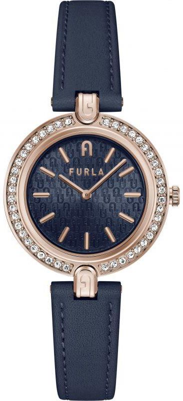 Zegarek damski Furla Logo Links WW00002006L3 Najważniejsze cechy i funkcje zegarka Gwarancja: 2 lata - Okres ochrony udzielanej przez producenta przypisany oryginalnym produktom. Oznacza, że w przypadku pojawienia się usterki nie wynikającej z winy użytkownika, w ciągu 2 lat klient ma prawo do złożenia reklamacji w autoryzowanym serwisie producenta.Kształt koperty: Okrągła - Najbardziej popularny kształt koperty występujący w przypadku naręcznych czasomierzy.Materiał wykonania: Stal szlachetna - stal szlachetna antyalergiczna (316l) - inaczej nazywana stalą chirurgiczną to najczęściej używany przy produkcji zegarków materiał. Dzięki swoim właściwościom antyalergicznym opartym na znikomej wręcz zawartości niklu uczulać może zaledwie 5% alergików. Dzięki temu, że nie rdzewieje i nie zmienia koloru, zapewnia wysoki komfort użytkowania na długie lataMechanizm: Kwarcowy (zasilany baterią) - Najpopularniejszy rodzaj mechanizmu, jego siłę napędową stanowi bateria. Margines błędu waha się między -15/+21 sekund w skali miesiąca.Pasek/Bransoleta: Pasek skórzany - Wykonany z naturalnej, miękkiej skóry, która idealnie układa się na nadgarstku. Dzięki odpowiedniemu wyprofilowaniu przylega do ręki jednocześnie utrzymując kopertę w stabilnej pozycji. Standardowa żywotność paska wynosi 6-9 miesięcy, jednak dla zapewnienia długowieczności można stosować specjalne kosmetyki poprawiające jego wygląd.Płeć: Damski - Model przeznaczony dla kobiet. Łączący w sobie cechy, które uwielbia płeć piękna – doskonały design jak i niezawodność. Sprawdzi się jako dodatek do strojów na różne okazje i podkreśli charakter właścicielki.Szkło: Mineralne - Rodzaj szkła, który jest najczęściej spotykany przy produkcji czasomierzy. Posiada 4/10 punktów w skali Mohsa. Znacznie mniej odporny na zarysowania niż odpowiednik wykonany z szafiru, jednakże jeśli chodzi o podatność na stłuczenia, oceniany lepiej niż szkło z korundu.Wodoodporność: 50m (pływanie powierzchniowe) - Klasa wodoodporności, wg której w czasomierzu można pływać powierzchniowo. Czasomierz tej klasy jest również odporny na zachlapania.Nanoszenie koloru: PVD/IP - Wyjątkowo trwała metoda nanoszenia koloru drogą jonizacji. Jej odporność na ścieranie wynosi nawet 10 lat.Pozłacany: w kolorze różowego złota - Pokryty trwałą warstwą w kolorze różowego złota. Nadaje czasomierzowi dodatkowych atutów wizualnych i wzmacnia go na wypadek zarysowań. Dane techniczne: Gwarancja 2 lata Kolor Granatowy, Różowe złoto Kształt koperty Okrągła Materiał wykonania Stal szlachetna Mechanizm Kwarcowy (zasilany baterią) Pasek/Bransoleta Pasek skórzany Płeć Damski Średnica koperty 34mm Styl Fashion Szkło Mineralne Tarcza Ciemna Wodoodporność 50m (pływanie powierzchniowe) Nanoszenie koloru PVD/IP Pozłacany w kolorze różowego złota Zdobienia Kryształy