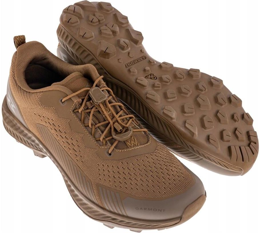 BUTY GARMONT 9.81 HELI - COYOTE 44 (2732 UK9,5) Wysokość buta: Niskie Kolor butów: Odcienie brązu Materiał cholewki: Syntetyk Membrana: Nie Wyściółka ocieplająca: Nie Sposób mocowania: Sznurowanie Płeć: Męska Kolor/kamuflaż: Odcienie brązu Cechy dodatkowe: Buty o wysokiej oddychalności, podeszwa środkowa z pianki EVA Kolor główny: Coyote Producent: Garmont Prezentujemy lekkie, a zarazem trwałe buty o stylistyce taktyczno-sportowej. Wyprodukowane z technologią bezszwowej cholewki z oddychającego Flyknit. Syntetyczne wstawki zabezpieczają i zwiększają trwałość, chroniąc jednocześnie stopy przed urazami. Obuwie model 9.81 Heli to uniwersalny wybór do użytku miejskiego bądź terenowego. Buty posiadają innowacyjną funkcję automatycznego sznurowania, co umożliwia idealne dopasowanie się do stopy. Praktyczny ściągacz ze stoperem na sznurowadłach ułatwia szybkie zakładanie i zdejmowanie obuwia. Komfort noszenia wzrasta dzięki zestawowi konstrukcyjnych rozwiązań Add, które sprawiają, że buty idealnie dopasowują się do stopy. Wyposażone w antypoślizgowe podeszwy zewnętrzne Garmont Magnet, które charakteryzują się głębokim, profilowanym bieżnikiem, zapewniając stabilność i doskonałą przyczepność na różnych powierzchniach. Podeszwy są odporne na ścieranie. Miękka podeszwa środkowa z pianki EVA gwarantuje amortyzację. Dane techniczne Kolor: Coyote Materiał: - główny: dzianina, tworzywo sztuczne - podeszwa zewnętrzna: guma (Garmont Magnet) - podeszwa środkowa: pianka EVA Waga pary (rozmiar 42): 740 g Producent: Garmont, Włochy