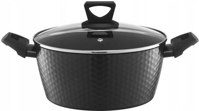 Garnek aluminiowy Diamond 20 cm 2,3 l AMBITION Garnek aluminiowy z powłoką nieprzywierającąJeśli szukasz niezawodnego garnka do codziennego gotowania, kolekcja Diamond jest dla Ciebie. Wykonany z grubego aluminium, garnek ze szklaną pokrywką 20 cm zapewnia równomierne nagrzewanie i efektywne gromadzenie ciepła. Diamentowe tłoczenie z drobinkami brokatu daje mu wyjątkowy charakter, a jego wewnętrzna powłoka ceramiczna Ilag Xeradur 2 stanowi gwarancję nieprzywierania i łatwego czyszczenia. Przyjazny dla środowiska, bezpieczny dla zdrowia i odpowiedni dla każdego typu kuchenki - garnek aluminiowy z kolekcji Diamond przyniesie do Twojej kuchni nowy poziom jakości. Do garnka dołączona jest pasująca, szklana pokrywka. Grube aluminium: Odporność na odkształcenia i trwałość.Diamentowe tłoczenie: Wyjątkowy design z drobinkami brokatu.Powłoka ceramiczna Ilag Xeradur 2: Nieprzywierająca, łatwa w czyszczeniu.Bez szkodliwych substancji: Brak PFAS, PTFE, PFOA, kadmu i ołowiu.Wszechstronność: Dla wszystkich typów kuchenek, w tym indukcyjnych.DANE TECHNICZNEMarkaAmbitionKolekcjaDiamondŚrednica [cm]20Pojemność [l]2.3Długość [cm]35Szerokość [cm]21Wysokość [cm]9Waga [kg]1.196MateriałAluminium, Ilag, Powłoka nieprzywierająca, Szkło, Tworzywo sztuczneZastosowanieIndukcja, Kuchenka elektryczna, Kuchenka gazowa, Płyta ceramicznaKolorczarnyWzórgeometrycznyEan5904134521712 5904134521712 023954