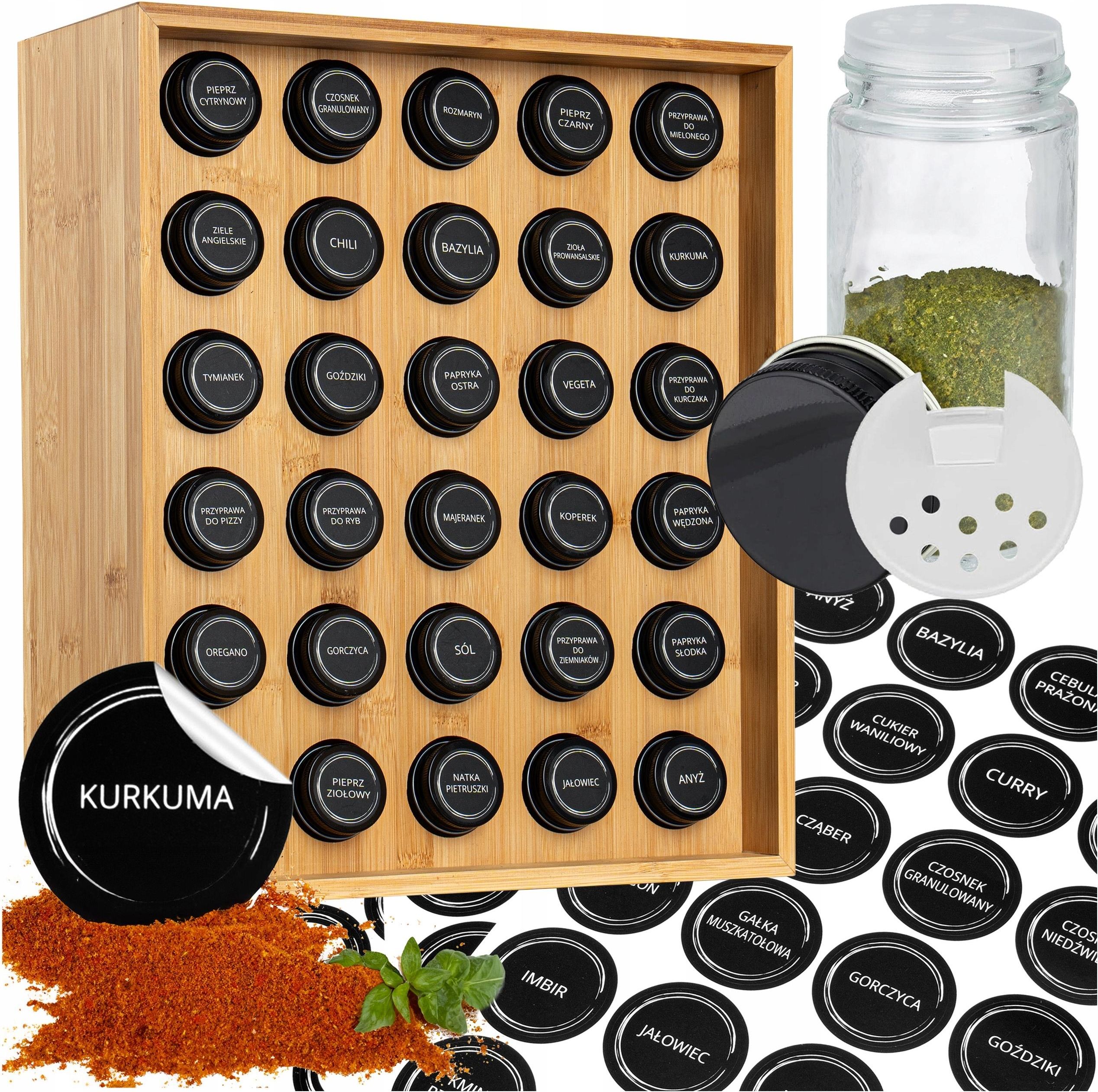 PRZYPRAWNIK regał NA PRZYPRAWY zioła bambusowy ORGANIZER SŁOICZKI NAKLEJKI STOJAK NA PRZYPRAWY drewniany ORGANIZER REGAŁ przyprawnik SŁOICZKI + NAKLEJKI Stojak wykonany z drewna bambusowego 30 słoiczków na przyprawy 72 naklejki z nazwami przypraw (w tym 12 do samodzielnego uzupełnienia) Porządek w …