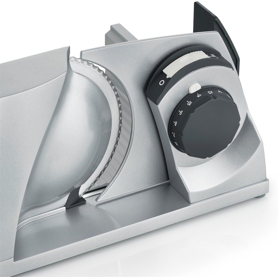Graef MT 1000 Krajalnica Graef MT 1000 to niezbędne urządzenie w każdej kuchni, które znacznie ułatwia przygotowywanie posiłków. Dzięki niej można szybko i precyzyjnie pokroić różnorodne produkty spożywcze, co oszczędza czas i sprawia, że gotowanie staje się przyjemnością. Ten model łączy w sobie nowoczesny design, funkcjonalność oraz wydajność, co czyni go idealnym wyborem dla każdego, kto ceni sobie komfort i jakość w kuchni. Materiał i moc urządzenia Podstawowym elementem tej krajalnicy jest ostrze, które odgrywa kluczową rolę w efektywności krojenia. W urządzeniu zastosowano wysokiej jakości stal nierdzewna, co zapewnia nie tylko doskonałą ostrość, ale także odporność na korozję. Dzięki temu ostrze zachowuje swoje właściwości przez długi czas, co wpływa na jakość przygotowywanych potraw. Moc silnika wynosząca 170 W zapewnia odpowiednią wydajność, co pozwala na intensywne użytkowanie, a długość przewodu zasilającego sprawia, że można go swobodnie ustawić w kuchni, bez obaw o ograniczenia w ruchu. Regulacja grubości cięcia Urządzenie wyróżnia się również innowacyjnymi mechanizmami regulacji grubości cięcia. Użytkownik ma do wyboru wygodne pokrętło, które umożliwia płynne dostosowanie grubości, co zwiększa komfort użytkowania. Dzięki zakresowi grubości cięcia wynoszącemu od 1 do 15 mm, użytkownik może dostosować grubość krojonych produktów do indywidualnych potrzeb. Taki zakres grubości pozwala na łatwe przygotowanie zarówno cienkich plasterków wędlin, jak i grubszych kawałków serów. Kluczowe funkcje krajalnicy Oto kluczowe funkcje, które wyróżniają ten model: wykonanie z wysokiej jakości stali nierdzewnej, zapewniającej trwałość i ostrość ostrza, płynna regulacja grubości cięcia od 1 do 15 mm, umożliwiająca dostosowanie do indywidualnych potrzeb, bezpieczne mechanizmy, takie jak blokada ostrza i zabezpieczenie przed przegrzaniem, możliwość krojenia w pionie oraz zastosowanie noża do krojenia wędlin, co podnosi wszechstronność urządzenia, łatwość w utrzymaniu czystości dzięki demontowalnym elementom nadającym się do mycia w zmywarce, dodatkowe akcesoria dostępne w ofercie, takie jak pojemnik na pokrojone produkty. Wymiary i bezpieczeństwo użytkowania Wymiary krajalnicy są dostosowane do standardowych warunków kuchennych, co sprawia, że nie zajmuje ona zbyt dużo miejsca. Jej waga czyni ją łatwą do przenoszenia i przechowywania. Bezpieczeństwo użytkowania jest kluczowe, dlatego model Graef MT 1000 został wyposażony w szereg mechanizmów zabezpieczających. Blokada ostrza oraz zabezpieczenie przed przegrzaniem to tylko niektóre z rozwiązań, które mają na celu ochronę użytkownika podczas pracy. Dzięki tym cechom, Graef MT 1000 staje się nie tylko praktycznym, ale i bardzo wszechstronnym urządzeniem kuchennym, które z pewnością zaspokoi potrzeby każdego miłośnika gotowania.