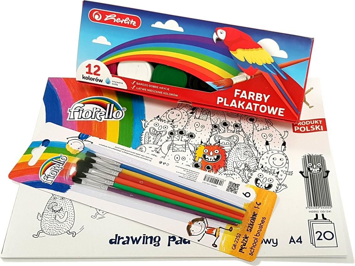 Herlitz Zestaw Farby Plakatowe 12 Kolorów + Pędzle 6 Szt + Blok Rysunkowy Białystok