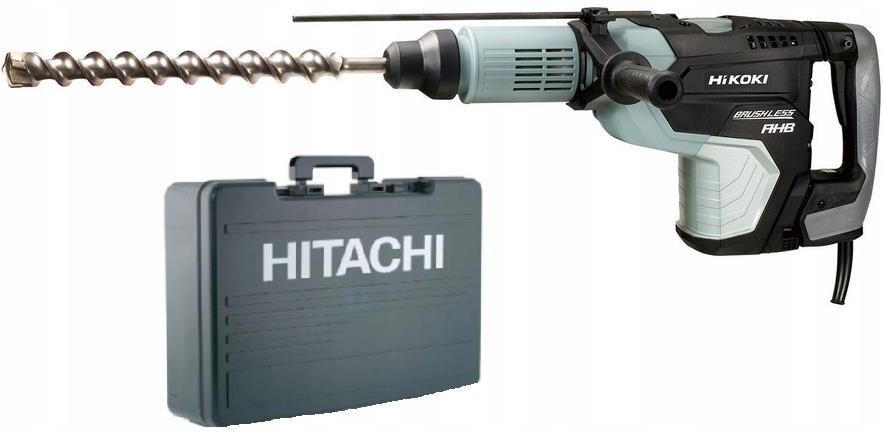 MŁOT WIERCĄCO-KUJĄCY HIKOKI SDS-MAX 1500W 18J 11,5kg BEZSZCZOTKOWY UVP DH52MEY WS Młot udarowo-obrotowy Hitachi DH52MEY z silnikiem bezszczotkowym to kompleksowe urządzenie, które sprawdzi się podczas wiercenia oraz wyburzania. Najniższy w klasie poziom wibracji dzięki systemowi antywibracyjnej UVP Posiada innowacyjny silnik bezszczotkowy, który pozwala na jeszcze wydajniejszą pracę. Dzięki temu innowacyjnemu rozwiązaniu, jak jest silnik indukcyjny, nie trzeba martwić się wymianą szczotek, jak w przypadku tradycyjnego silnika komutatorowego. Opcja regulacji prędkości obrotowej DANE TECHNICZNE: Typ silnika: bezszczotkowy Moc: 1500W Napięcie elektryczne: 230V Energia pojedynczego udaru: 18J Prędkość obrotowa bez obciążenia: 110-280/min Wiertło: 52mm Korona: 160mm Liczba udarów: 1000-2400/min Długość całkowita: 585mm Emisja wibracji (wiercenie z udarem w betonie): 14m/s2 Emisja wibracji podczas kucia: 15.5m/s2 Masa: 11,5kg. Wyposażenie podstawowe: Rękojeść boczna Walizka transportowa Smar.