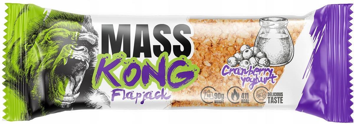 Mass Kong Flapjack to pyszny baton stworzony z płatków owsianych, syropu cukrowego i pysznych dodatków. Czysta energia, świetny dodatek do wysokokalorycznej diety i zamiennik posiłku! ⚡ 350 – 428 kalorii w jednej porcji (w zależności od smaku) ⚡ 32-40% płatków owsianych i kawałki owoców ⚡ Węglowodany i tłuszcze wspierające siłę i wytrzymałość ⚡ Białko dla optymalnej regeneracji ⚡ Certyfikat jakości IFS FOOD od Bureau Veritas Energia i siła w każdym kęsie Twoje sportowe cele są naprawdę zaawansowane, ale brakuje Ci energii? Mass Kong FlapJack to klucz do osiągnięcia swojego maksymalnego potencjału. Z tym batonem dostarczasz do swojego organizmu potężną dawkę kalorii, które działają jak paliwo napędzające Twoje mięśnie. Podczas Twoich treningów nie ma miejsca na kompromisy. Mass Kong dostarcza Ci niezbędnej energii, byś mógł podjąć wyzwanie każdego dnia. Ten baton to nie tylko przekąska – to narzędzie, które pomaga osiągnąć szczyt treningowych możliwości. Łatwy sposób na nadwyżkę kaloryczną W procesie budowy masy mięśniowej nadwyżka kaloryczna to Twój największy sprzymierzeniec. Z pomocą przychodzą batony Mass Kong FlapJack. To klucz do realizacji Twoich celów treningowych, które wymagają dostarczania odpowiedniej ilości pożywienia. FlapJack to 350-428 kalorii w pysznej formie, które stanowią impuls dla Twojego treningu. Te batony dostarczają kalorii w prosty i smaczny sposób, wspierając Twoje dążenia do wielkiej, imponującej sylwetki. Zbilansowana dieta paliwem dla mięśni Twoja dieta jest podstawą Twojej siły i wytrzymałości. Mass Kong FlapJack dostarcza Ci odpowiedniego wsparcia. Zawiera około 50g węglowodanów i 15-20g tłuszczu na porcję, co zapewnia zrównoważoną dietę i energię na każdy, nawet najdłuższy trening. Dodatek białka w każdym batonie pomaga w budowaniu masy mięśniowej i odpowiedniej regeneracji. To nieodzowna część Twojego planu treningowego, pozwalająca osiągnąć wymarzone cele. Certyfikat IFS FOOD – Gwarancja Jakości Mass Kong FlapJack otrzymał certyfikat IFS FOOD od renomowanego biura certyfikacji Bureau Veritas. IFS FOOD to międzynarodowy standard bezpieczeństwa żywności, który potwierdza jego najwyższą jakość. Bureau Veritas to globalny lider w dziedzinie certyfikacji, w związku z czym kupując FlapJacka Mass Kong masz pewność, że to produkt bezpieczny i godny zaufania. Składniki Porcja: 80 – 90g Porcji w opakowaniu: 1 Opakowanie: 80 – 90g Składniki Mass Kong Flapjack: Blueberry1: Owies (42%), nieuwodornione oleje roślinne (palmowy, rzepakowy), syrop z cukru inwertowanego, cukier trzcinowy, kawałki owoców jagodowych (4%) (jagody, koncentrat soku jabłkowego, olej słonecznikowy), mąka sojowa, substancja utrzymująca wilgoć: gliceryna roślinna, liofilizowane jagody (0,5%), aromat. Cranberry – Yoghurt2:Owies (33%), polewa jogurtowa (21%) (cukier, całkowicie i częściowo uwodornione tłuszcze roślinne (olej z ziaren palmowych), jogurt w proszku (mleko) (9%), słodka serwatka w proszku (mleko), emulgator: lecytyna słonecznikowa, naturalny aromat), syrop z cukru inwertowanego, oleje roślinne (palmowy i rzepakowy), cukier, gliceryna, mąka sojowa, suszona słodzona żurawina (2%) (żurawina, cukier, olej słonecznikowy), kawałki żurawiny (0,4%), aromat, żurawina w proszku. Chocolate – Orange3:Owies (gluten) (32%), polewa o smaku czekoladowym (soja) (17%) (cukier, oleje roślinne (palmowy), kakao w proszku o obniżonej zawartości tłuszczu, emulgator: lecytyna sojowa, polirycynoleinian poliglicerolu, aromat), oleje roślinne (palmowy, rzepakowy), syrop cukru inwertowanego, cukier trzcinowy, belgijskie wiórki czekoladowe (soja) (6%) (masa kakaowa, cukier, masło kakaowe, proszek kakaowy o obniżonej zawartości tłuszczu, emulgator: lecytyna sojowa), humektant: gliceryna roślinna, mąka sojowa, kandyzowana skórka pomarańczowa (1,8%) (skórka pomarańczowa, syrop glukozowy, cukier, regulator kwasowości: kwas cytrynowy), płatki skórki pomarańczowej (1,7%) (skórka pomarańczowa, fruktoza, cukier, glukoza, regulator kwasowości: kwas cytrynowy), aromat. Może zawierać gluten, orzechy, orzeszki ziemne, inne orzechy i nasiona sezamu. Informacja żywieniowa w 100g 1/2/3 w 80g1/90g2/90g3 Wartość energetyczna 441 kcal/ 457 kcal / 476 kcal 353kcal / 411kcal / 428 kcal Tłuszcze 19,1g / 22g / 23g 15,3g / 19,8g / 20,7g w tym kwasy tłuszczowe nasycone 7g / 12g / 12g 5,6g / 10,8g / 10,8g Węglowodany 59,4g / 58g / 60g 47,5g / 52,2g / 54g w tym cukry 23,5 g / 34g / 26,8g 18,8g / 30,6g / 24,1g Błonnik 4,2g / 3,3g / 1,7g 3,4g / 3g / 1,5g Białko 5,8g / 5,8g / 6,1g 4,6g / 5,2g / 5,5g Sól 0,16g / 0,11g / 0,11g 0,13g / 0,1g / 0,1g * Składniki, gramatura oraz wartości odżywcze mogą się nieznacznie różnić w zależności od wariantu smakowego produktu. Nie przekraczać zalecanej porcji do spożycia w ciągu dnia. Produkt nie może być stosowany przez osoby uczulone na którykolwiek z jego składników. Przechowywać w miejscu niedostępnym dla małych dzieci. Przechowywać w miejscu suchym w temperaturze pokojowej w szczelnie zamkniętych opakowaniach. Najlepiej spożyć przed końcem: data i nr partii produkcyjnej znajduje się na boku/spodzie opakowania. Masa netto: 80 – 90g