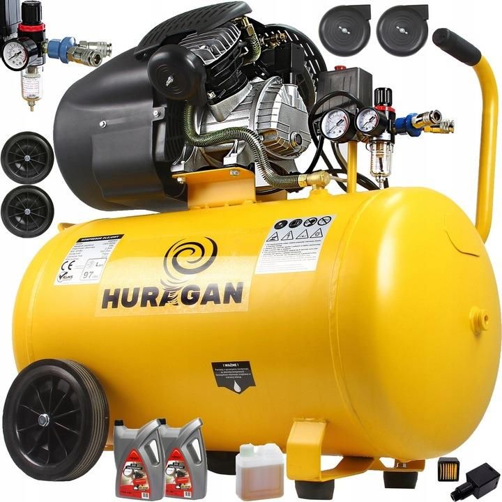 》》》 SPRĘŻARKA KOMPRESOR OLEJOWY 100L 230V HURAGAN ® M88003《《《 》》 + 2x OLEJ SPRĘŻARKOWY L-DAA100 2L 2x AX01 《《 Kompresor olejowy 100L renomowanej firmy Huragan Polska. Jest on o dużej mocy max 2200 watt (3 KM) sprawdzi się idealnie w każdym warsztacie. Może napędzać różnego rodzaju narzędzia …