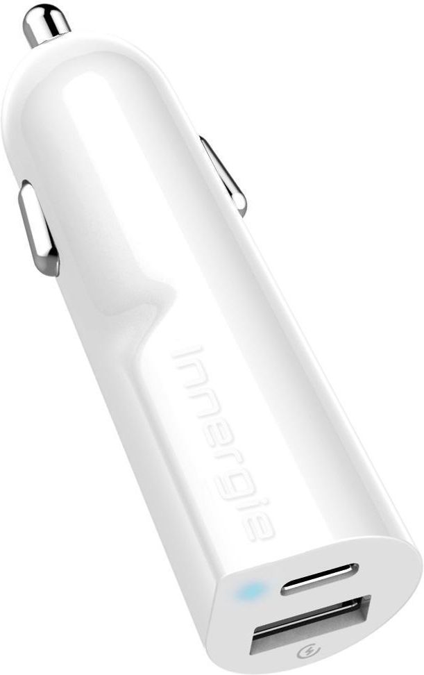 Ładowarka samochodowa 30W (USB-C 3.A, USB 2.4A) Ładowarka samochodowa Innergie PowerJoy 30D została wyposażona w porty USB-A oraz USB-C dzięki czemu wyróżnia się szeroką kompatybilnością. Ponadto, port USB-C posiada wsparcie dla technologii ładowania Power Delivery oraz QuickCharge 3.0, w rezultacie czego Twoje urządzenia będą ładować się jeszcze szybciej. Model PowerJoy 30D to przede wszystkim bezpieczeństwo użytkowania, ponieważ dzięki zastosowanym zabezpieczeniom chronione są nie tylko urządzenia, ale również Twój pojazd. Czujnik temperatury oraz technologia InnerShield zapobiegają przegrzaniu urządzenia podczas ładowania. Obudowa ładowarki dodatkowo jest wykonana z materiałów odpornych na działanie wysokich temperatur. Odporna i wytrzymała konstrukcja Na każdym etapie w procesie produkcji ładowarki samochodowej Innergie PowerJoy 30D drobiazgowo sprawdzane są wszystkie parametry konstrukcji, aby mieć pewność, że ładowarka zniesie oddziaływanie ciepła i wyższych temperatur sięgających nawet 150 stopni Celsjusza. W ten sposób powstała ładowarka, która gwarantuje bezpieczeństwo użytkowania w niemal każdych warunkach Specyfikacja Moc wyjściowa: 30W Wymiary: 69 długości x 20 wysokości Waga: 32g Wyjścia USB: USB-A: 5V DC /2.4A (Inteligentne wykrywanie) USB-C: 5V DC/3A 9V.DC/2A (Wspiera QC3.0 & USB PD) USB Port 1 USB-A 1 USB-C