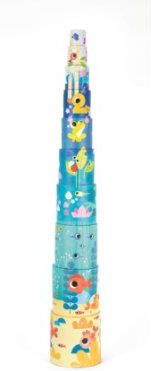 Okrągła piramida wieża Staw 02675 marki Janod składa się z 10 klocków w kształcie tub, wykonanych z najwyższej jakości kartonu. Zabawka doskonale sprawdzi się jako prezent już dla rocznego dziecka, któremu sprawia radość zarówno budowanie, jak i przewracanie konstrukcji. Na ściankach piramidy znajdują się piękne, kolorowe obrazki zwierzątekżyjących nad wodą oraz stworzeń podwodnych, m.in. żab, kijanek, ryb czy ślimaków. Rysunki nadają zabawce unikatowego wyglądu, a mniejszym pociechom pełnią funkcję edukacyjną – pomogą przy poznawaniu nazw zwierząt. Klocki sąbardzo lekkie i całkowicie bezpieczne. Dodatkowo każdy poziom wieży ma inną wielkość, aby dziecko mogło je bez problemu układać jeden na drugim. A po zabawie, wieża zajmuje niewiele miejsca, ponieważ klocki można schować do środka we właściwej kolejności (jeden w drugi). Producent pomyślał o wykorzystaniu wieży także na nieco późniejszym etapie rozwoju maluszka. Dlatego na górnych ściankach umieszczone zostały cyfry od 1 do 10 do nauki rozpoznawania i liczenia. Kartoniki starszym dzieciom sprawdzą się jako pudełka na przybory do rysowania, a także organizer do przechowywania mniejszych zabawek. Dzięki takiemu zastosowaniu, na półkach w pokoju dziecka będzie panował porządek. Zabawka przeznaczona dla dzieci od 12 miesiąca życia zapakowana jest w estetyczne, kartonowe pudełko. Tak spakowane klocki to idealny pomysł na prezent dla dzieci na pierwsze urodzinki, na dzień dziecka czy też bez okazji, gdy idziemy w odwiedziny. W czasie zabawy dziecko odkrywa chęć eksperymentowania oraz umiejętność budowania i tworzenia. Zabawki edukacyjne marki Janod wyróżniają się nowatorskimi rozwiązaniami, wysoką jakością materiałów i precyzyjnym wykonaniem. Podczas beztroskiej zabawy dzieci rozwijają zmysły, a zastosowanie w zabawkach wielu funkcjonalności wpływa na ogólny postęp pociech. Dzięki przypisaniu do odpowiedniej kategorii wiekowej, służą ćwiczeniu adekwatnych na danym etapie umiejętności, jak motoryka dłoni czy kojarzenie kształtów i kolorów. Na dowód tego, że zabawki są całkowicie bezpieczne przyznano im certyfikaty jakości: EN71-1; EN71-2, EN71-3; REACH.