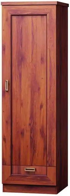 Klasyczna Elegancja W Twoim Domu – Kolekcja TADEUSZ Kolekcja TADEUSZ to wyjątkowe połączenie klasyki i solidnego rzemiosła, stworzone z myślą o osobach, które pragną wprowadzić do swojego domu atmosferę elegancji i ponadczasowego stylu. To meble, które dzięki swojej tradycyjnej formie oraz starannie dobranym detalom potrafią stworzyć wnętrze przywodzące na myśl ponadczasowe, stylowe aranżacje, a jednocześnie zapewniają pełną funkcjonalność w codziennym użytkowaniu. Zestaw składa się aż z wielu różnorodnych brył, co daje ogromne możliwości aranżacyjne. Dzięki temu kolekcja świetnie sprawdzi się nie tylko w salonie, ale również w jadalni, sypialni czy gabinecie, tworząc spójną i harmonijną całość w całym domu. Wśród elementów znajdziesz przestronne szafy, eleganckie witryny ze szklanymi frontami, komody o różnych wymiarach, stoliki kawowe i okolicznościowe, a także praktyczne regały i stoły. Taka różnorodność pozwala dowolnie komponować wnętrze, dopasowując układ mebli do indywidualnych potrzeb oraz wielkości pomieszczenia. Wyjątkowy charakter kolekcji podkreśla wybarwienie dąb stuletni – ciepły, szlachetny odcień drewna, który emanuje elegancją i naturalnością. To kolor dodający wnętrzu przytulności, a jednocześnie podkreślający prestiżowy charakter mebli. Dąb stuletni doskonale sprawdzi się zarówno w klasycznych aranżacjach, jak i w pomieszczeniach, gdzie dominuje styl tradycyjny z nutą nowoczesności. Dzięki temu kolekcja TADEUSZ może być uniwersalnym wyborem, który z łatwością wpisze się w różnorodne koncepcje aranżacyjne. Meble wykonano z trwałych i solidnych materiałów, takich jak laminowana płyta meblowa z obrzeżami zabezpieczonymi okleiną ABS, która chroni krawędzie przed uszkodzeniami. Stabilne plecy z płyty HDF, metalowe uchwyty i zawiasy nie tylko zwiększają komfort użytkowania, ale także gwarantują długowieczność mebli. To kolekcja, która łączy w sobie piękno, funkcjonalność i wytrzymałość, dzięki czemu stanie się sercem domowej przestrzeni na wiele lat. Co wyróżnia kolekcję TADEUSZ? Ponadczasowy design – klasyczna forma mebli wzbogacona dekoracyjnymi detalami, które nadają im elegancji i szyku. Pełna swoboda aranżacyjna – aż 26 dostępnych brył pozwala dopasować zestaw do każdej przestrzeni, od małych wnętrz po przestronne salony. Funkcjonalność w najlepszym wydaniu – praktyczne szafki, komody i witryny zapewniają dużo miejsca do przechowywania, a stoły i stoliki tworzą komfortowe miejsce do spotkań z rodziną. Naturalne piękno drewna – wybarwienie dąb stuletni ociepla aranżację i podkreśla klasyczny charakter mebli. Solidne wykonanie – wykorzystanie trwałych materiałów i metalowych detali to gwarancja długiego użytkowania. Wybarwienie dąb stuletni – elegancki, szlachetny odcień inspirowany naturalnym drewnem, który nadaje wnętrzu wyjątkowego klimatu. Materiał korpus i fronty: laminowana płyta meblowa odporna na uszkodzenia mechaniczne, zarysowania i wilgoć. Wymiary szerokość: 46 cm wysokość: 190 cm głębokość: 57 cm Informacje dodatkowe obrzeże: wzmocnione okleiną ABS – zapewnia trwałość i dodatkową ochronę krawędzi. tył szafy i witryn: płyta HDF – stabilność i solidne wykończenie. uchwyty: metalowe – eleganckie, trwałe i wygodne w użytkowaniu. zawiasy: metalowe – zapewniają płynne i ciche otwieranie drzwi. produkcja: produkt POLSKI Na pozostałych naszych aukcjach znajdą Państwo inne meble z kolekcji TADEUSZ. Poniższe zdjęcie przedstawiają przykładową aranżację