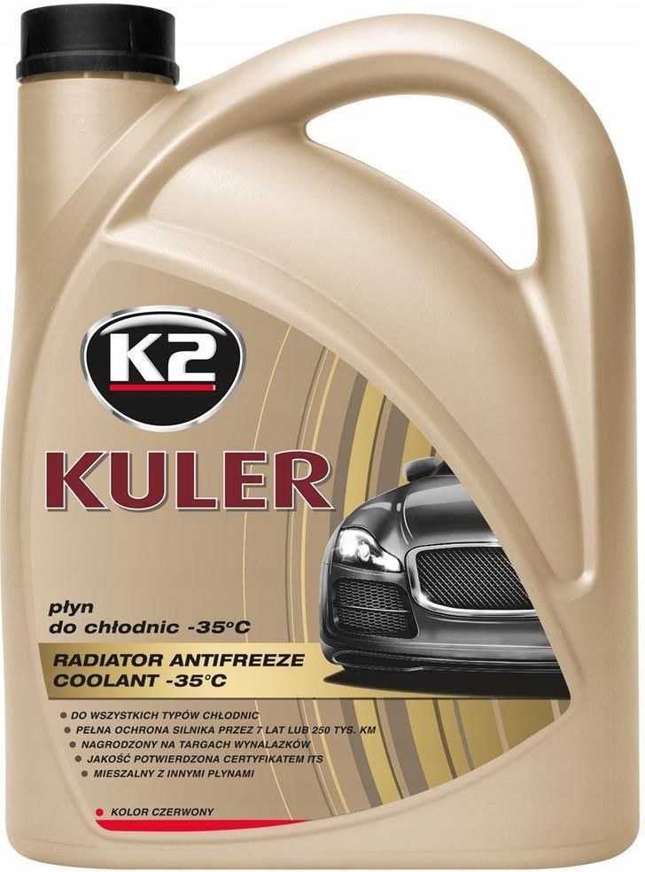K2 KULER -35C 4L CZERWONY K2 Kuler -35°C to nowoczesny, uniwersalny, gotowy do użycia płyn chłodniczy, który cechuje się bardzo wysokimi parametrami użytkowymi. Ten innowacyjny produkt został nagrodzony złotymi medalami na Międzynarodowych Targach Wynalazków w Brukseli, Genewie i Seulu. ZAPEWNIA …