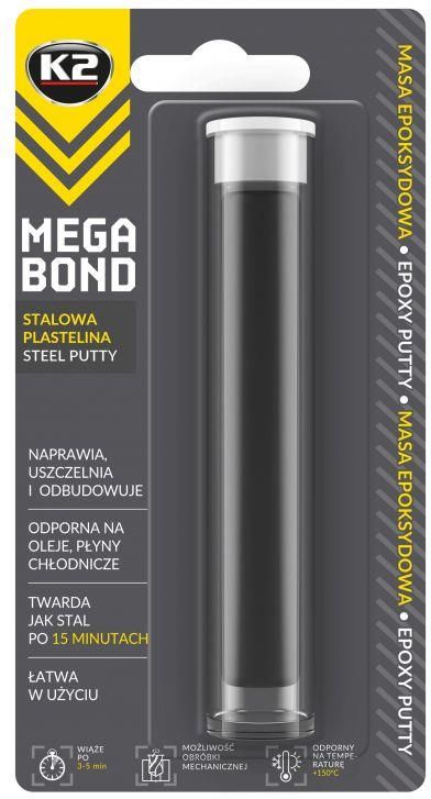 K2 MEGA BOND Stalowa plastelina Stalowa plastelina naprawcza K2 Mega Bond to profesjonalna, szybkowiążąca plastyczna masa epoksydowa o szerokiej gamie zastosowań. Niezastąpiona w motoryzacji, przemyśle i domu. Wiąże materiały takie jak stal, żeliwo, aluminium, miedź, mosiądz, drewno, beton, …