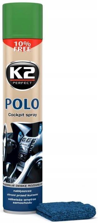 k2 polo cockpit to spray do pielęgnacji i konserwacji deski rozdzielczej. zawiera specjalne nanocząsteczki, dzięki którym w łatwy i szybki sposób zabezpieczy cały kokpit, przywróci głęboką barwę oraz wyrazistą fakturę czyszczonych elementów. produkt wnika w czyszczony materiał, wydobywając intensywny kolor i blask deski rozdzielczej. antystatyczna formuła utrudnia ponowne osadzanie kurzu oraz chroni przed niekorzystnym działaniem promieni uv. całkowicie bezpieczny dla czyszczonych powierzchni. zapobiega przedwczesnemu starzeniu się materiałów takich jak plastik, winyl, guma i inne tworzywa sztuczne. k2 polo cockpit intensywnie czyści, nabłyszcza i chroni przed przywieraniem brudu. odświeża wnętrze auta pozostawiając jeden ze swoich czternastu delikatnych zapachów. Sposób użycia przed użyciem wstrząsnąć opakowaniem. spryskać na powierzchnię z odległości około 25 cm. polerować przy pomocy mikrofibry. . K2 polo cockpit to spray do pielęgnacji i konserwacji deski rozdzielczej. zawiera specjalne nanocząsteczki, dzięki którym w łatwy i szybki sposób zabezpieczy cały kokpit, przywróci głęboką barwę oraz wyrazistą fakturę czyszczonych elementów. produkt wnika w czyszczony materiał, wydobywając intensywny kolor i blask deski rozdzielczej. antystatyczna formuła utrudnia ponowne osadzanie kurzu oraz chroni przed niekorzystnym działaniem promieni uv. całkowicie bezpieczny dla czyszczonych powierzchni. zapobiega przedwczesnemu starzeniu się materiałów takich jak plastik, winyl, guma i inne tworzywa sztuczne. k2 polo cockpit intensywnie czyści, nabłyszcza i chroni przed przywieraniem brudu. odświeża wnętrze auta pozostawiając jeden ze swoich czternastu delikatnych zapachów. sposób użycia: przed użyciem wstrząsnąć opakowaniem. spryskać na powierzchnię z odległości około 25 cm. polerować przy pomocy mikrofibry.
