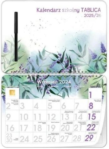 Wybór odpowiedniego narzędzia do organizacji czasu ma kluczowe znaczenie, zwłaszcza w środowisku szkolnym. Kalendarz szkolny tablica na rok 2025/2026 to doskonałe rozwiązanie dla uczniów i nauczycieli, którzy pragną zapanować nad swoimi obowiązkami i planami. Dzięki przemyślanej konstrukcji oraz funkcjonalności, sprawdzi się zarówno w klasie, jak i w domu. Praktyczny design i funkcjonalność Ten kalendarz ma format 260 mm x 360 mm po rozłożeniu, co zapewnia wystarczającą przestrzeń do zapisywania ważnych dat i wydarzeń. Jego miesięczny układ kalendarium pozwala na wygodne planowanie zadań i przegląd miesięcznych planów. Dzięki spiralnemu systemowi bindowania, korzystanie z kalendarza jest niezwykle proste, a jego strona pozostaje stabilna podczas używania. Tablica suchościerna i praktyczne dodatki Jednym z wyróżniających elementów jest dołączona tablica suchościerna. Dzięki temu użytkownicy mogą na bieżąco aktualizować swoje notatki czy przypomnienia, a także w prosty sposób usuwać nieaktualne informacje. W komplecie znajduje się również mazak, który umożliwia szybkie zapisywanie ważnych informacji. To rozwiązanie idealne dla dynamicznego środowiska szkolnego, gdzie zmiany są codziennością. Notatki i organizacja Każda strona kalendarza oferuje dedykowane miejsce na notatki, co zachęca do przypisywania dodatkowych informacji, takich jak terminy projektów czy ważne wydarzenia. Dzięki temu można z łatwością zorganizować swoje plany i nie przegapić żadnego istotnego terminu. Dodatkowo, kalendarz obejmuje okres od września do sierpnia, co doskonale odpowiada rocznemu cyklowi edukacyjnemu. Wybór tego kalendarza to krok w stronę lepszej organizacji i efektywności. Dzięki jego praktycznym funkcjom, użytkownicy będą mieli pewność, że każda ważna informacja będzie zawsze na wyciągnięcie ręki. To idealne narzędzie dla każdego, kto pragnie zapanować nad swoim czasem i zadaniami w nadchodzących miesiącach.