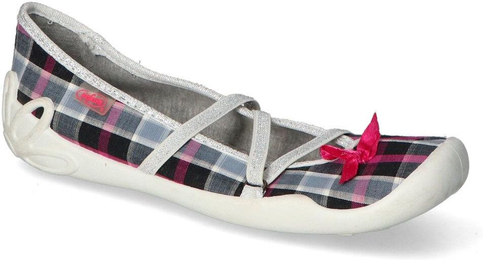 Kapcie Befado to idealny wybór dla dzieci, które cenią sobie komfort i modny wygląd. Wykonane z wysokiej jakości materiału tekstylnego, te kapcie zapewniają doskonałą wentylację, co sprawia, że stopy pozostają świeże nawet podczas dłuższego noszenia. Urokliwy wzór w kratkę w odcieniach fioletu i różu, z delikatnymi kokardkami, dodaje im wdzięku i sprawia, że każde dziecko będzie się w nich doskonale czuło.Kapcie charakteryzują się ergonomicznym kształtem i miękkim wnętrzem, co zapewnia komfort podczas codziennych aktywności. Dzięki elastycznemu zapięciu na rzep, dzieci mogą samodzielnie zakładać i ściągać kapcie, co zwiększa ich niezależność.Elastyczna podeszwa gwarantuje dobrą przyczepność, co jest niezwykle ważne podczas zabaw w ruchu. Wybierając kapcie Befado, inwestujesz w produkt, który łączy w sobie funkcjonalność, komfort oraz atrakcyjny design, zapewniając dzieciom radość w każdym kroku.