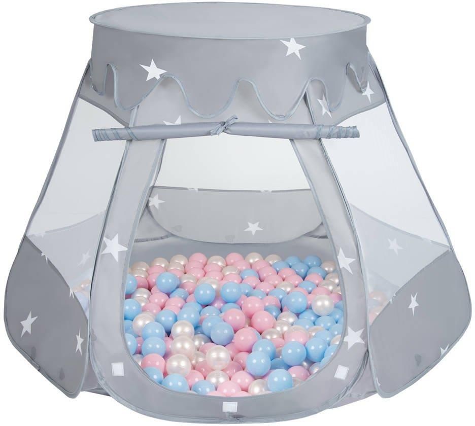 Kiddymoon Partners Namiot zamek NZ-100X z piłeczkami 6cm szary babyblue-pudrowy róż-perła (17176478) Białystok