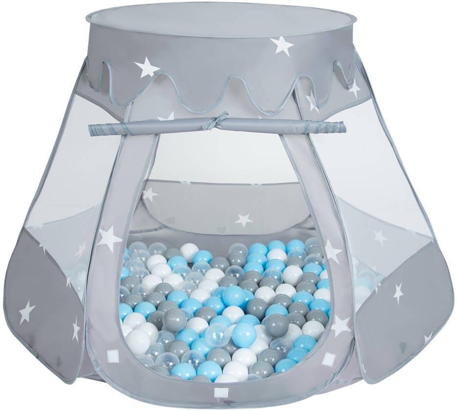 Kiddymoon Partners Namiot zamek NZ-100X z piłeczkami 6cm szary szary-biały-transparent-babyblue (17155457) Białystok