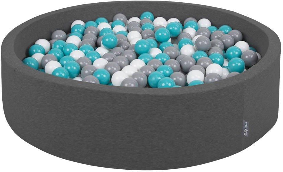 Kiddymoon Suchy basen okrągły z piłeczkami 7cm 120x30 piankowy ciemnoszary szary-biały-turkus (1685728) Białystok