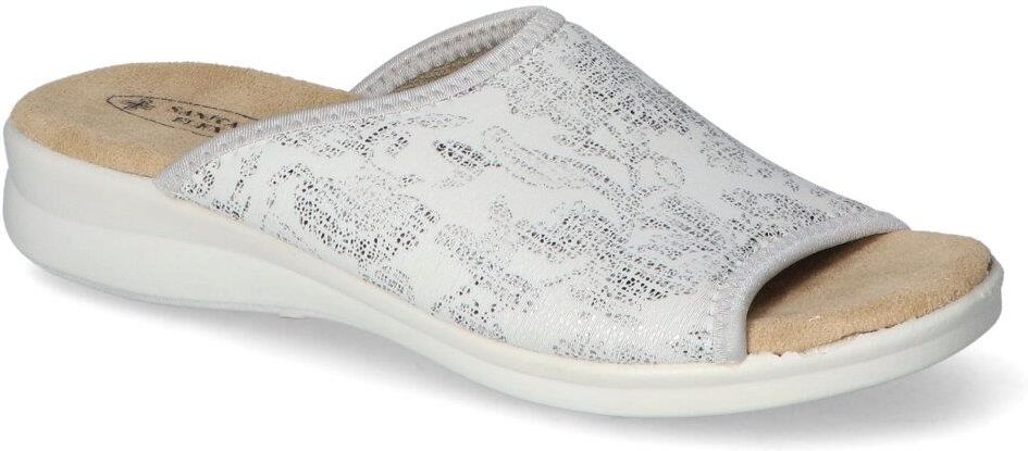 Wygodne klapki firmy Sanital Flex:- cholewka została wykonana z najlepszej jakości materiału tekstylnego - wnętrze wykonane z wygodnego materiału tekstylnego - miękka materiałowa wkładka zapewnia komfort podczas użytkowania - elastyczna faktura buta ułatwia zakładanie i dopasowanie obuwia do stopy- podeszwa o grubości 4 cm zapewnia stabilizację - srebrny kolor oraz modny fason zachwyci każdą kobietę!