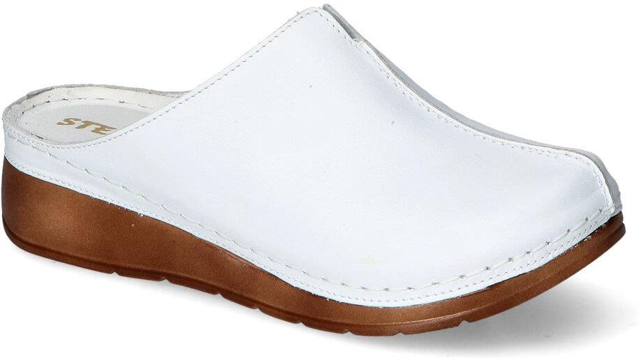 Stylowe klapki firmy Stella :- wykonane z najlepszej jakości skóry naturalnej licowej- skórzana wkładka wewnętrzna zapewni komfort użytkowania - podeszwa o grubości 4 cm zapewni stabilizację podczas chodzenia - klasyczny biały kolor