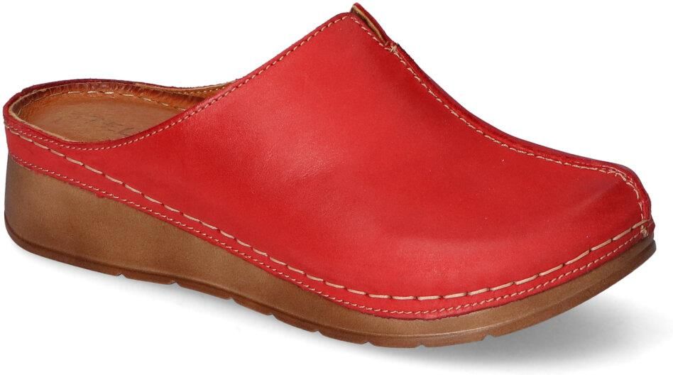 Stylowe klapki firmy Stella :- wykonane z najlepszej jakości skóry naturalnej licowej- skórzana wkładka wewnętrzna aby zapewnić komfort podczas użytkowania - wnętrze zostało pokryte skórą naturalną - koturn 4 cm zapewnia stabilizację - czerwony kolor i modny fason tworzą niesamowite połączenie, które zachwyci każdego!