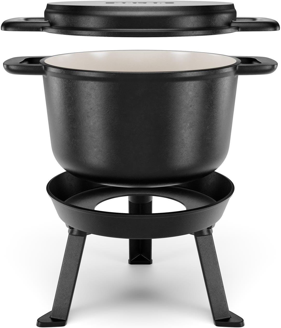 Gotowanie bez ograniczeń Kociołek żeliwny Köler o pojemności aż 5 litrów to nie tylko naczynie – to kompletne, wielofunkcyjne rozwiązanie dla każdego, kto kocha gotować i eksperymentować w kuchni. W zestawie znajdziesz solidny garnek, ciężką pokrywkę o podwójnej funkcji oraz stabilny, żeliwny stojak. Całość tworzy wyjątkowe trio, które sprawdzi się zarówno w codziennej kuchni, jak i w warunkach terenowych. Gotujesz, pieczesz, dusisz, smażysz – i wszystko to w jednym komplecie, który nie zawiedzie Cię niezależnie od warunków i źródła ciepła. To kuchenne narzędzie, które łączy styl, funkcjonalność i wytrzymałość w jednej formie.