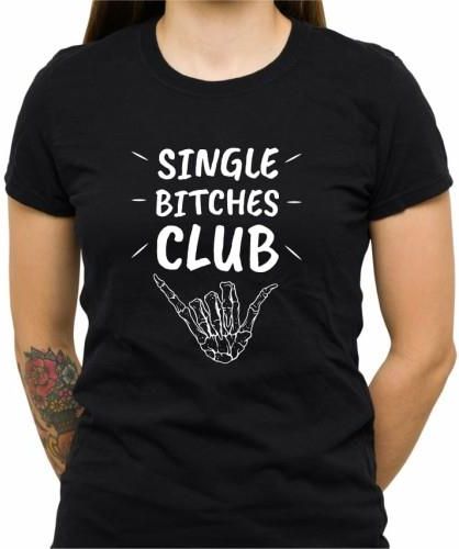 Koszulka dla odważnych singielek - T-shirt napisem "single bitches club". Wielkość nadruku na koszulce "Single bitches club" Szerokość nadruku na koszulkach różni się w zależności od rozmiaru T-shirtu i wynosi odpowiednio: przy rozmiarze S - 20 cm przy rozmiarze M - 23 cm przy rozmiarze L, XL, XXL - 26 cm. Wysokość wzoru jest dobierana proporcjonalnie, jednak nigdy nie przekracza 38 cm. W przypadku dłuższych grafik szerokość nadruku wynika z proporcji przy zachowaniu długości 38 cm. Przed złożeniem zamówienia zajrzyj do zakładki "Rozmiary koszulek".