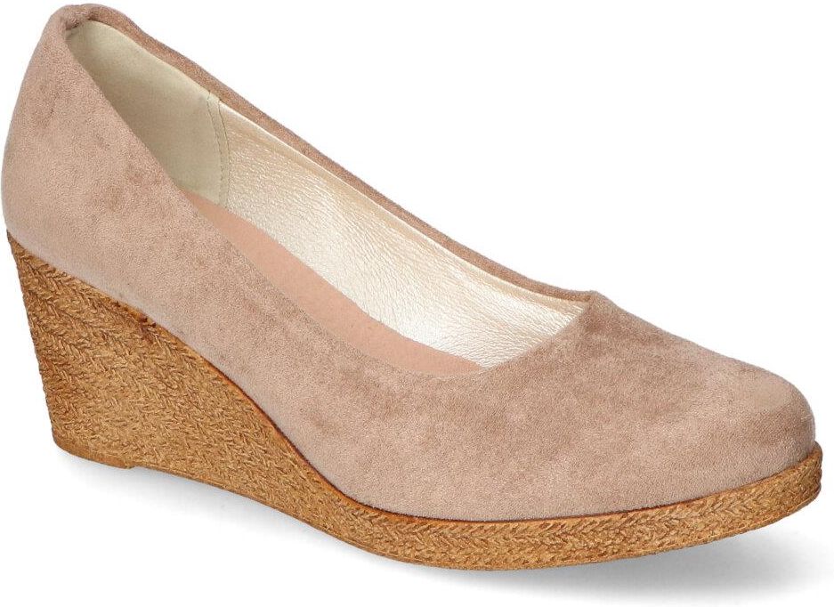 Eleganckie czółenka znanej marki For-But: - cholewka wykonana została z ekozamszu - wnętrze pokryte zostało skórą ekologiczną aby zapewnić komfort podczas użytkowania - wkładka wewnętrzna wykonana została ze skóry ekologicznej - koturn o wys. 6 cm dodaje szyku i elegancji - Beżowy kolor oraz modny fason sprawią, że każda kobieta poczuje się w nich wyjątkowo!