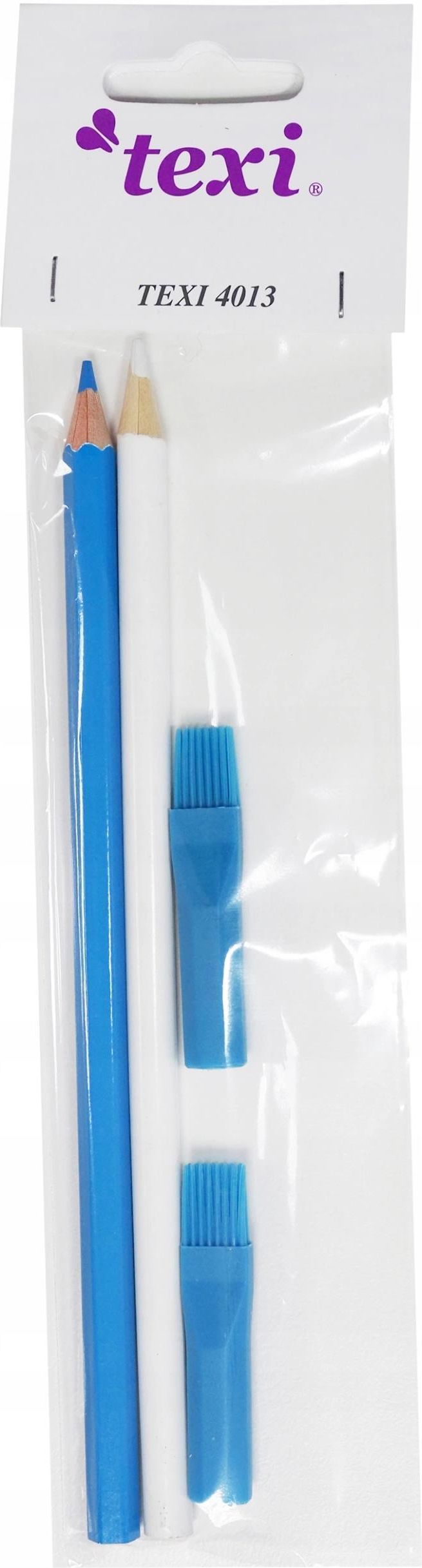 Zestaw dwóch kredek krawieckich z miękkim rysikiem do znaczenia tkanin i dzianin. Stosowane do zaznaczenia np. miejsca przyszycia guzika, naszycia kieszeni, patki itp. Zbędne oznaczenia można łatwo zetrzeć przy użyciu szczotki.