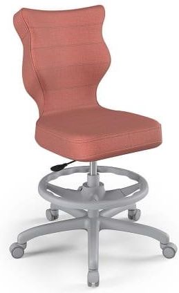 Krzesło dziecięce Petit z podnóżkiem tkanina Monolith kolor różowy Model Petit z podnóżkiem dopasowany do biurek o wysokości 70-82 cm. Nowoczesne krzesło z podnóżkiem Petit z szarą podstawą jest innowacyjną propozycją. Cała seria charakteryzuje się głównym motywem przewodnim jakim jest ergonomiczny kształt i propagowanie zdrowej postawy podczas siedzenia. W jaki sposób to niezwykłe krzesło wpisuje się w tę koncepcję? Oparcie jest ściśle dopasowane do ukształtowania kręgosłupa. Sprawia to, że plecy mniej się męczą. Nasze krzesło tapicerowane wymusza przybranie zdrowej pozycji siedzącej która jednocześnie zapewnia maksimum komfortu.