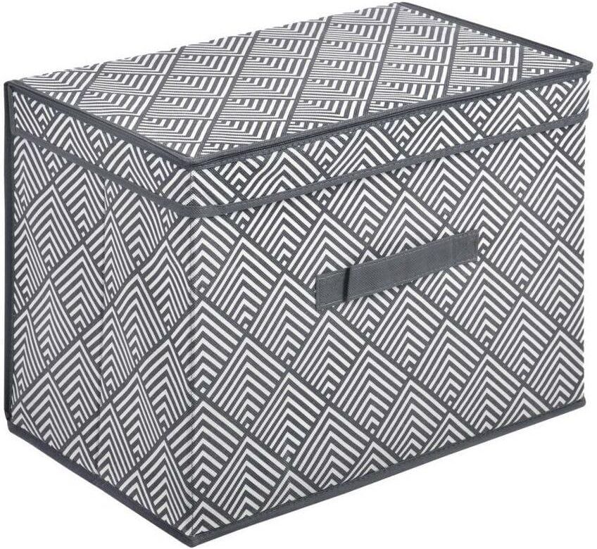 Wysokość (w cm): 30 Szerokość (w cm): 40 Głębokość (w cm): 25 Pojemność (w l): 30 Materiał wykonania: Tkanina polipropylenowa Pudełka z pokrywką znakomicie nadają się do przechowywania różnych części garderoby - od szalików, czapek po swetry. Dzięki temu stwarzamy przestrzeń dla sezonowo używanej …