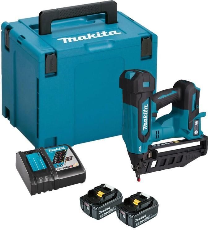 Gwoździarka akumulatorowa Makita DBN601RTJAkumulatorowa sztyfciarka z silnikiem bezszczotkowym z możliwością wbijania sztyftów do 64 mm.Dzięki technologii XPT, urządzenie posiada podwyższoną odporność na pył i wilgoć. Gumowe zderzaki ochronne zabezpieczają materiał i korpus narzędzia przed zadrapaniami i uszkodzeniami. Posiada ergonomiczny uchwyt oraz funkcję blokady "pustego" strzału. Przeźroczyste okienko magazynka umożliwia kontrolę ilości gwoździ.Z regulacją głębokości wbijania za pomocą pokrętła oraz beznarzędziowym usuwaniem zablokowanych gwoździ. Posiada biegunowy przełącznik trybu wbijania - wystrzał pojedynczy lub szybkie wbijanie sekwencyjne.Wysoka wydajność pracy - możliwość wbicia około 1100 gwoździ na jednym naładowaniu akumulatora BL1820B. Dioda LED z funkcją opóźnionego wygaszania, oświetla obszar roboczy.Cechy produktu:Duża moc i szybkostrzelność dzięki pneumatycznemu mechanizmowi sprężynowemu2 tryby pracy: tryb pojedynczego strzału oraz tryb uruchamiania stykowego do szybkiego wbijania sekwencyjnegoRegulacja głębokościBezszczotkowy silnik prądu stałego o długiej żywotnościWbudowane światło LED oświetla obszar roboczyFunkcja blokady "pustego" strzałuFunkcja zapobiegająca ponownemu uruchomieniu narzędzia, minimalizuje przypadkowe uruchomienieTechnologia XPT opracowana w celu zapewnienia zwiększonej odporności na pył i wilgoć, w trudnych warunkach w miejscu pracyDane techniczne:Zasilanie LXTDługość gwoździa19 - 64 mmŚrednica gwoździ1,6 mmPojemność magazynka110Napięcie akumulatora18 VPoziom mocy akustycznej94 dB(A)Poziom ciśnienia akustycznego83 dB(A)Współczynnik hałasu3 dB(A)Poziom wibracji≤ 2,5 m/s²Współczynnik wibracji K h1,5 m/s²Waga maszyny z akumulatorem2,9 - 3,3 kgWymiary (D x S x W)276 x 98 x 320 mmWskaźnik zapięcia16 GaTyp akumulatorówLi-ionKąt nachylenia magazynka0 ºWaga2,6 kgRegulacja głębokościDostarczone wyposażenie:walizka Makpac IVwkład do walizkiuchwyt do paska2x bateria BL1850 5.0Ahładowarka DC18RC...