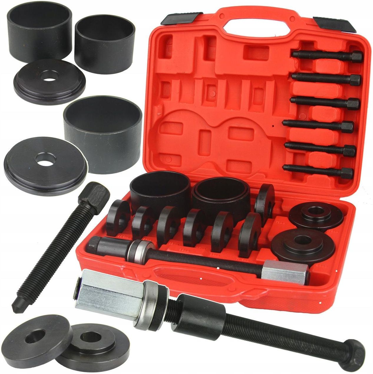 ŚCIĄGACZ TULEI PRASA ZESTAW ADAPTERY ŁOŻYSK PRASY CO WYRÓŻNIA NASZ PRODUKT 1✔️Wysoka jakość wykonania z trwałych materiałów, gwarantująca niezawodność i długą żywotność. Kompleksowy zestaw zawierający szeroki asortyment akcesoriów dopasowanych do różnych rozmiarów i typów części. Szybkość i łatwość obsługi, oszczędzająca czas i wysiłek podczas wymiany zaklinowanych elementów. Uniwersalne zastosowanie w różnych gałęziach przemysłu, zapewniające elastyczność i wszechstronność. OPIS PRODUKTU Ściągacz łożysk tulei piasty przedniej. Stosowany przy montażu i demontażu przedniej piasty. Stosując te narzędzia można demontować piasty bez naruszenia ich konstrukcji przez pobijanie. Całość jest bardzo solidnie wykonana, dyski są grube i mocne a gwinty głęboko żłobione. Walizka z tworzywa sztucznego ułatwia przechowywanie i transport. ZAWARTOŚĆ ZESTAWU Dyski 9 sztuk: 55,5 mm , 59 mm, 62mm, 65mm, 66mm, 71,5mm, 73mm, 78mm, 84mm Tuleje 3 sztuki: 76mm, 86mm, 91mm 6 śrub Śruba napędowa dł.gw 270mm, nakrętka, podkładki, dystans.