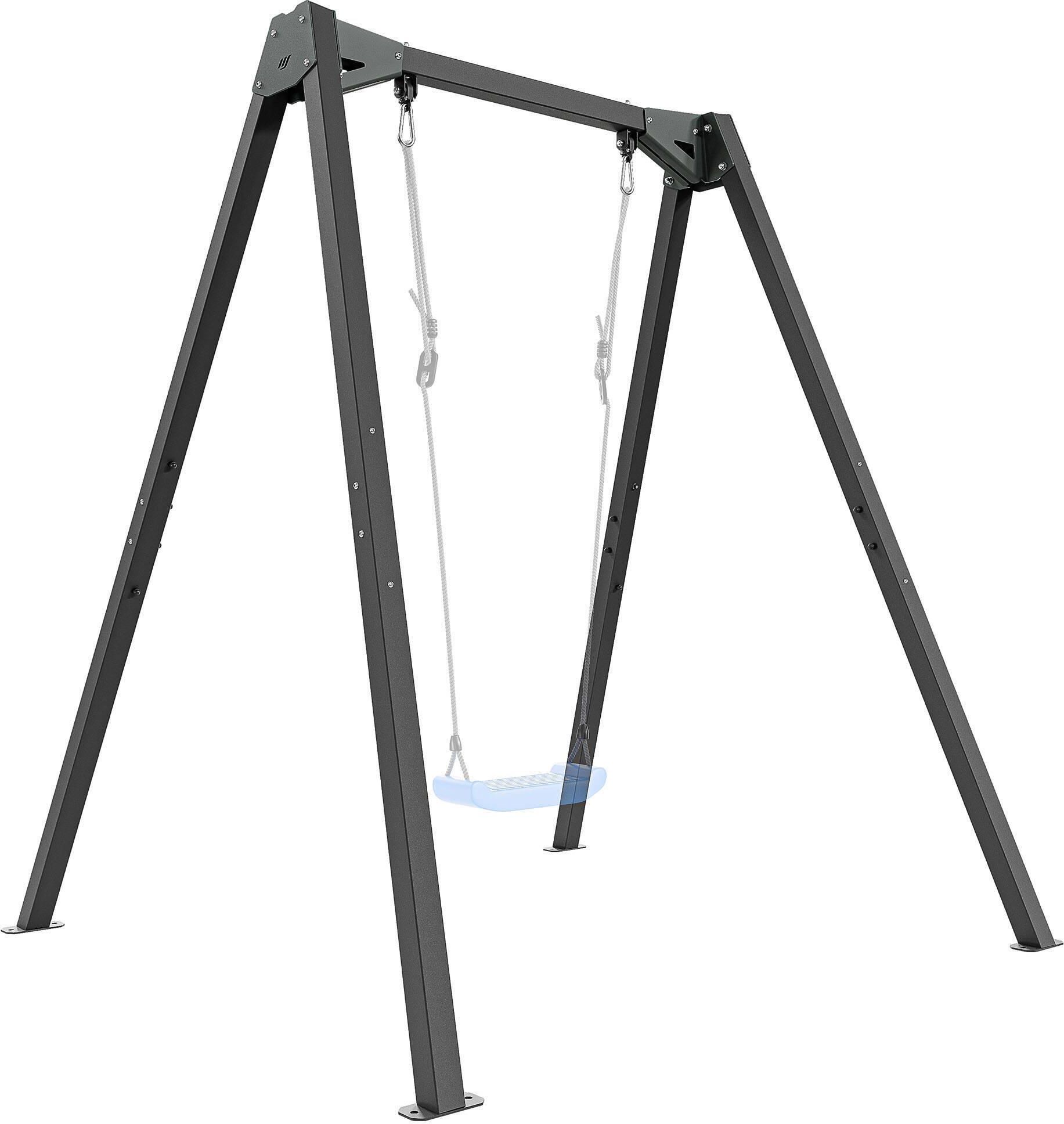 Stelaż PREMIUM MO-012 do huśtawki pojedynczej to wysokiej jakości metalowa konstrukcja od Marbo Sport, idealna do stworzenia placu zabaw w ogrodzie, parku lub na posesji.Uwaga! Liny i siedziska nie wchodzą w zakres dostawy.Rama umożliwia mocowanie różnych powierzchni do siedzenia i akcesoriów odpowiednich zarówno do zabawy, jak i treningu sportowego. Masz swobodę wyboru modelu, kształtu i koloru, który najlepiej odpowiada Twoim indywidualnym potrzebom i oczekiwaniom.Haki z łożyskamiW ramie PREMIUM MO-012 zastosowano łożyskowane wsporniki z karabińczykami, które zapewniają płynne bujanie się huśtawki.Dzięki wysokiej jakości łożyskom kulkowym ze stali nierdzewnej, uchwyty pracują cicho i zapewniają komfortowy wypoczynek. Zmniejszenie oporu i tarcia ułatwia przyspieszenie huśtawki i wydłuża żywotność karabińczyków.Wzmocnienie ramySzkielet ramy MO-012 opiera się na solidnych stalowych profilach o przekroju 60x60x2 mm. Dodatkowe wzmocnienia na łączeniach zapewniają stabilność i wytrzymałość całej konstrukcji, która może bezpiecznie wytrzymać obciążenie do 200 kg.Otwarty kąt ramyRama huśtawki MO-012 została zaprojektowana w taki sposób, aby poprzeczka tworzyła z nogami kąt rozwarty, co znacznie zwiększa stabilność całej konstrukcji.Malowane proszkowo wykończenie ramy zwiększa jej odporność na warunki atmosferyczne i uszkodzenia mechaniczne oraz zapewnia estetyczny wygląd przez wiele lat.Opcja kotwienia do podłożaW stopach ramy MO-012 wykonano otwory umożliwiające zakotwiczenie konstrukcji w podłożu i zapobiegające jej przemieszczaniu się.Rodzaj zakotwienia należy dobrać indywidualnie, biorąc pod uwagę takie czynniki jak rodzaj i wilgotność gleby, intensywność użytkowania oraz wagę użytkownika.