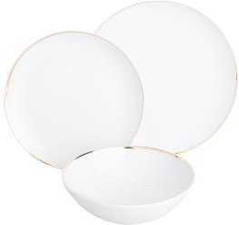 Kolor:biały;Liczba elementów:18;Liczba kompletów:6;Materiał wykonania:porcelana;Możliwość mycia w zmywarce:nie;Możliwość używania w kuchenkach mikrofalowych:nie;Rodzaj zestawu:obiadowy;Seria:Moderna Gold;Zawartość:6 x talerz deserowy, 6 x talerz obiadowy, 6 x talerz do zupy;Średnica:talerz deserowy 20,5 cm, talerz obiadowy 24 cm, talerz do zupy 18 cm