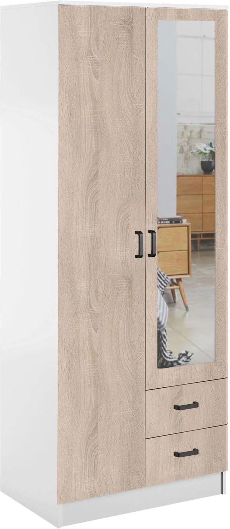 Mebel Bos Szafa Cento Ii 80X200 2D2S Biały Dąb Sonoma Z Lustrem Białystok