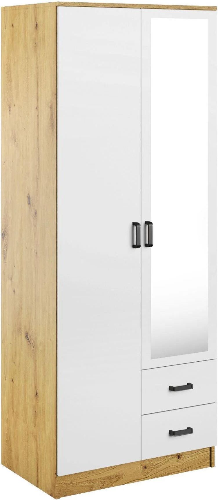 Mebel Bos Szafa Cento Ii 80X200 2D2S Dąb Artisan Biały Z Lustrem Białystok