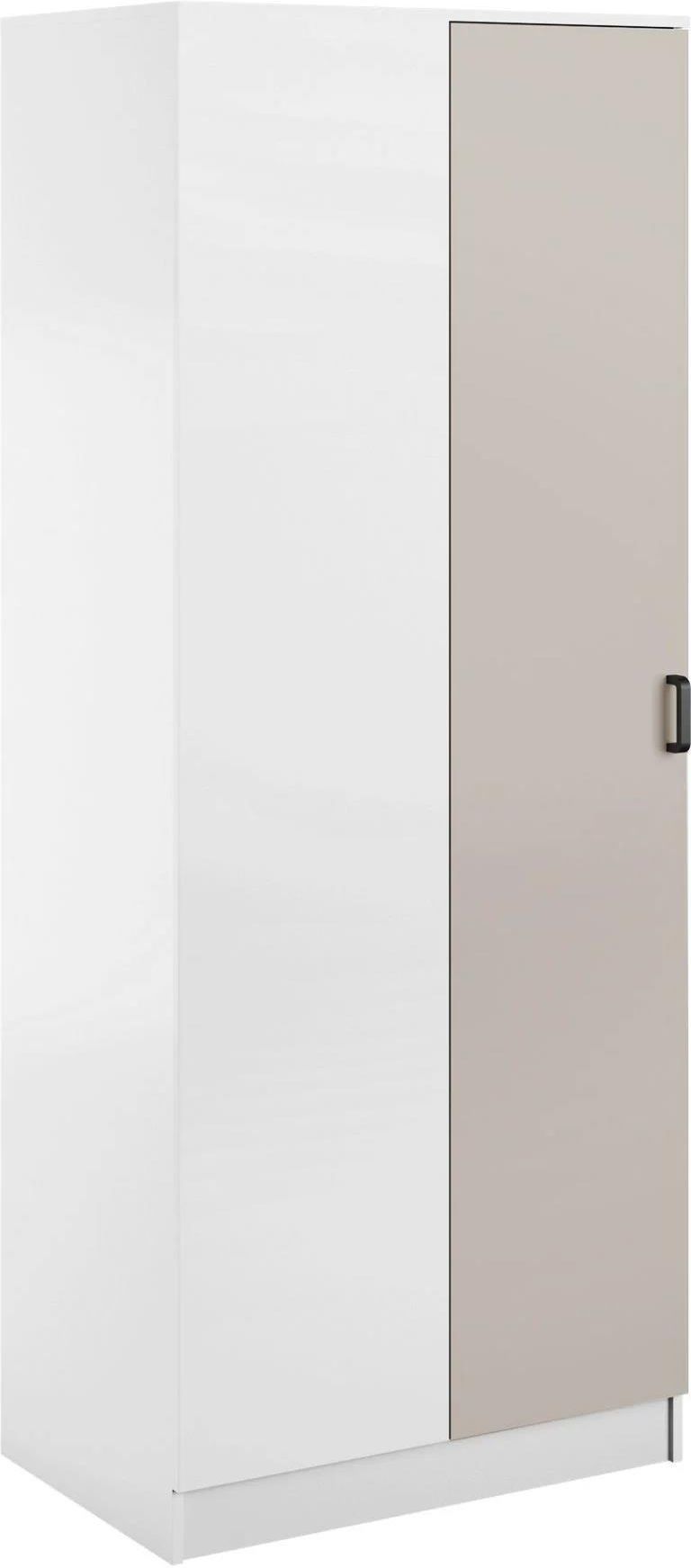 Szafa Cento II narożna 82x200 1D biały / kaszmir to nowoczesna propozycja dla miłośników subtelnych kontrastów i przemyślanej organizacji przestrzeni. Jasny korpus w kolorze białym łączy się z frontem w odcieniu kaszmiru, tworząc harmonijne zestawienie, które doskonale współgra ze stylami takimi jak japandi, skandynawski, klasyczny, a także nowoczesny czy boho. Wykonana z trwałej płyty laminowanej o grubości 16 mm, wykończona odpornym obrzeżem PCV, szafa zapewnia solidność oraz estetykę na lata. Model posiada jedno uchylne drzwi z wygodnym uchwytem z tworzywa sztucznego, a wewnątrz znajduje się zamknięta półka na najważniejsze przedmioty codziennego użytku. Wymiary mebla to 82 cm szerokości, 205 cm wysokości oraz 52 cm głębokości. Szafa przeznaczona jest do samodzielnego montażu i sprawdzi się zarówno w sypialni, garderobie, jak i w przedpokoju. Całość objęta jest gwarancją trwającą dwa lata.