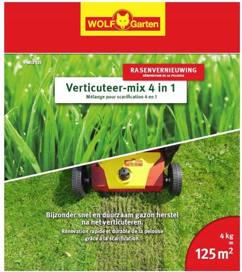 Mieszanka Wertykulacyjna WOLF-Graten 4 w 1 V-MIX 125 Mieszanka przeznaczona do bardzo szybkiej oraz trwałej odnowy trawnika, dosiewu pustych miejsc powierzchni trawnika oraz zapewnienia długotrwałej ochrony przed bakteriami. Mieszankę zaleca się stosować szczególnie po zabiegu wertykulacji, dzięki …