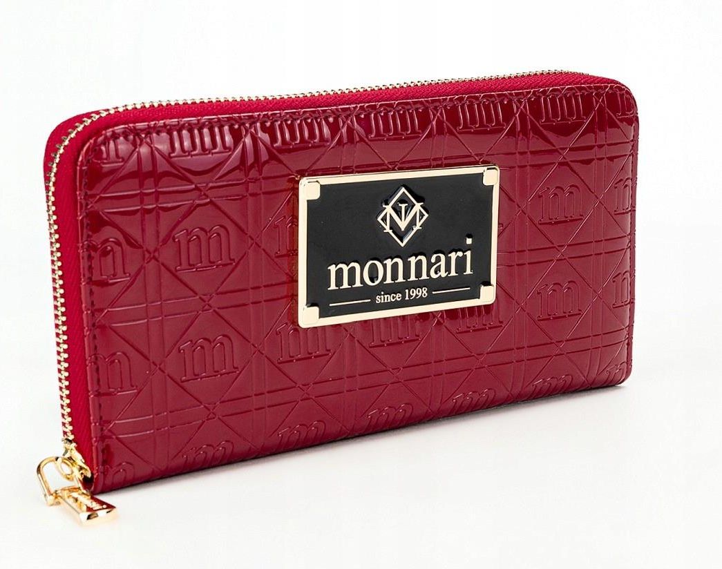 Monnari Efektowny pojemny portfel damski |Piórnik Czerwony lakier Logo Białystok