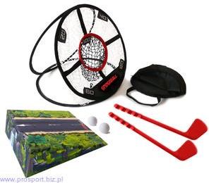 Mini golf Spiderball Kompaktowy zestaw, zabawka dla najmłodszych, dedykowana dzieciom w wieku nawet 3-7 lat Tarcza punktowa w formie siatki, zapakowana w sztywny, laminowany karton o wymiarach 39x39x14 cm, pełniący funkcję rampy. W komplecie także: - 2 trwałe, wykonane z ABS kije o długości 50 cm - 2 lekkie 10 gramowe piłki z poliuretanu o średnicy 42 mm - pokrowiec-torba na tarczę.