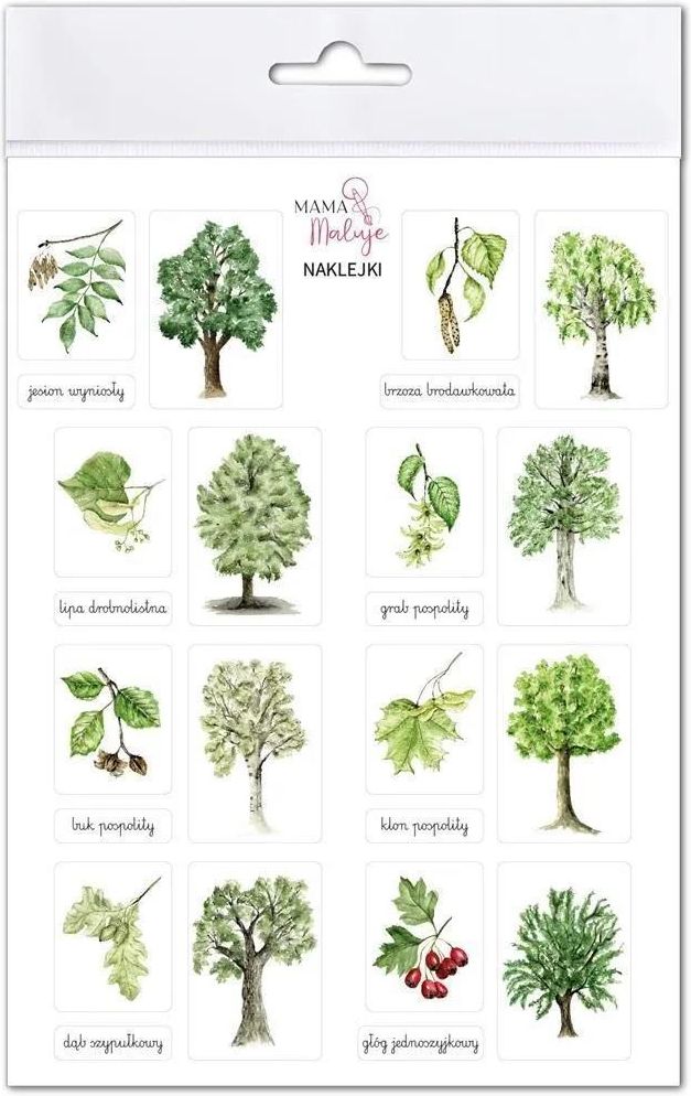 Jesion wyniosły, lipa drobnolistna czy brzoza brodawkowata to popularne drzewa, które można spotkać w Polsce, ale czy potrafimy je rozróznić? Te naklejki mogą w tym pomóc! Realistyczne ilustracje sprawiają, że naklejki z powodzeniem można wykorzystywać w celach edukacyjnych. Mogą być one elementem nauczania domowego lub różnego rodzaju zajęć przyrodniczych. A nie od dziś wiadomo, że najlepsza jest nauka poprzez zabawę. Zatem do dzieła! Wszystkie gatunki zawierają podpisy, dzięki czemu nikt nie będzie miał problemów w ich rozróżnianiu. Na odwrocie arkusza znajduje się wykaz przedstawionych na naklejkach drzew i ich owoców. Naklejki powstały na podstawie ręcznie malowanych ilustracji akwarelowych. Koniecznie zobacz też naklejki Drzewa 2