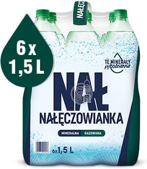 Jeżeli zależy Ci na mocniejszych wrażeniach, wypróbuj mineralną wodę gazowaną Nałęczowianka mocniejszy gaz. Dla miłośników większego orzeźwienia woda mineralna Nałęczowianka została wzbogacona o jeszcze większą moc odświeżających bąbelków. Cechy produktu: ? Pojemność: 1500ml x 6 butelek (zgrzewka) ? Mocniejszy gaz ? Średniozmineralizowana ? Niskosodowa - odpowiednia dla diety ubogiej w sód ? Ogólna zawartość rozpuszczonych składników mineralnych: 675 mg/l Kompozycja 7 minerałów Nałęczowianki Wapń (118 mg/l) Potas (3,84 mg/l) Magnez (21,2 mg/l) Fluorki (0,27 mg/l) Chlorki (14,7 mg/l) Sód (10,9 mg/l) Wodorowęglany (449 mg/l) Mineralizacja ogólna (675 mg/l) Naturalna woda mineralnaNałęczowianka wydobywana jest z ujęcia o tej samej nazwie, położonego w uzdrowisku Nałęczów, które znajduje się w otulinie Kazimierskiego Parku Krajobrazowego na terenie Wyżyny Lubelskiej. Skład mineralny Nałęczowianki sprawia, że jest to woda, którą można pić codziennie. Nałęczowianka nasyca się składnikami mineralnymi podczas 20-letniej podróży przez pokłady skał. Dzięki temu, że woda mineralna czerpana jest ze źródeł podziemnych, zawiera tylko naturalną mikroflorę, a jej skład chemiczny jest stabilny i bezpieczny.