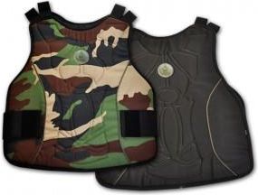 Kamizelka ochronna korpusu Kamizelka dwustronna - camo/ black, dostepna w dwóch rozmiarach: - M/L - regulacja w pasie w zakresie 88-115 cm. długość kamizelki od ramienia 56 cm - XL - regulacja w pasie w zakresie 98-125 cm. długość kamizelki od ramienia 62 cm