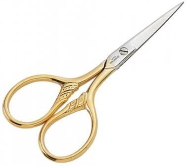 Nożyczki do haftu, stalowe kute, pozłacane uchwyty. Produkowane we Włoszech.